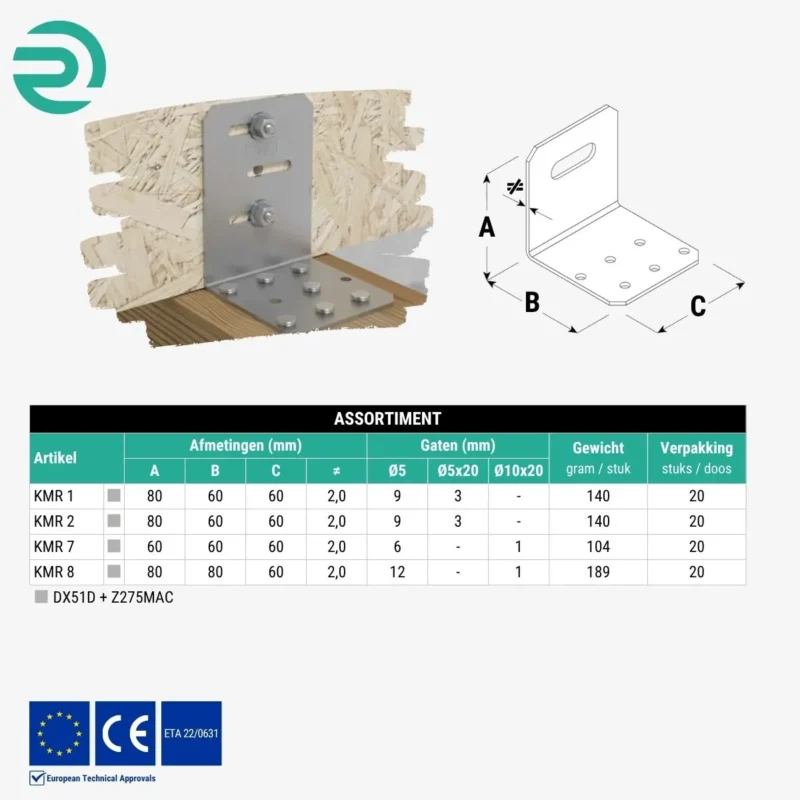Hoekijzer standaard 60x60x60 mm (2,0 mm)